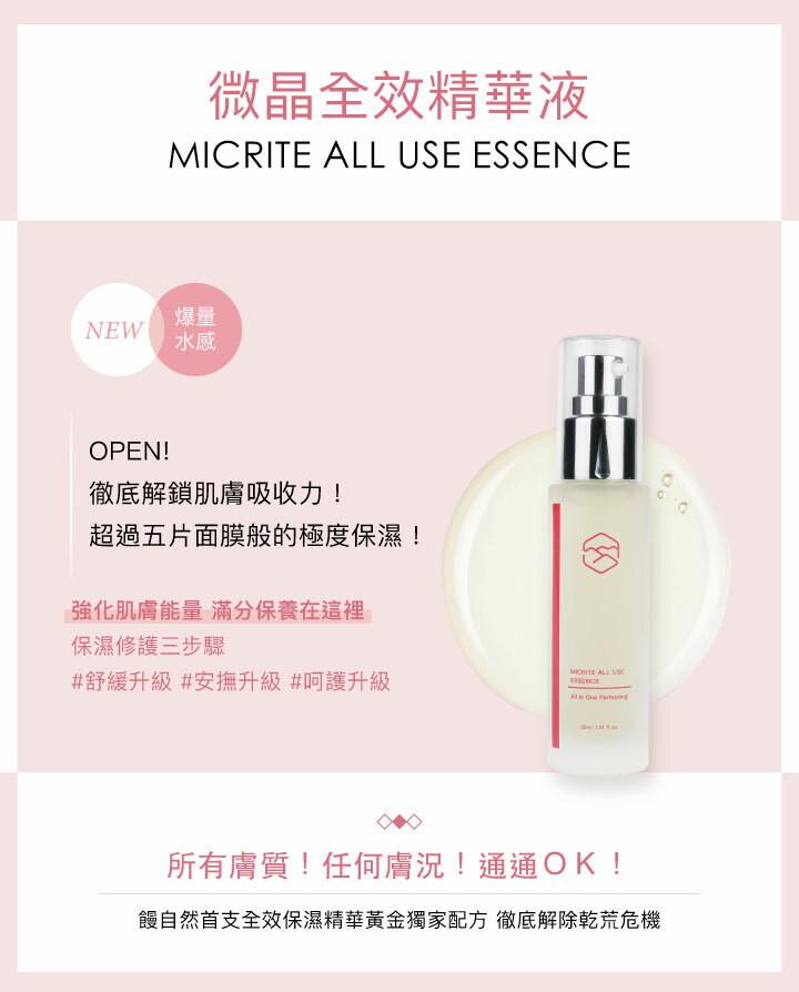 1. 玻尿酸:增加皮膚的含水性,提升肌膚保水的能力,讓肌膚保持潤濕度有彈性和光澤,具高效保溼性,減少細紋產生。