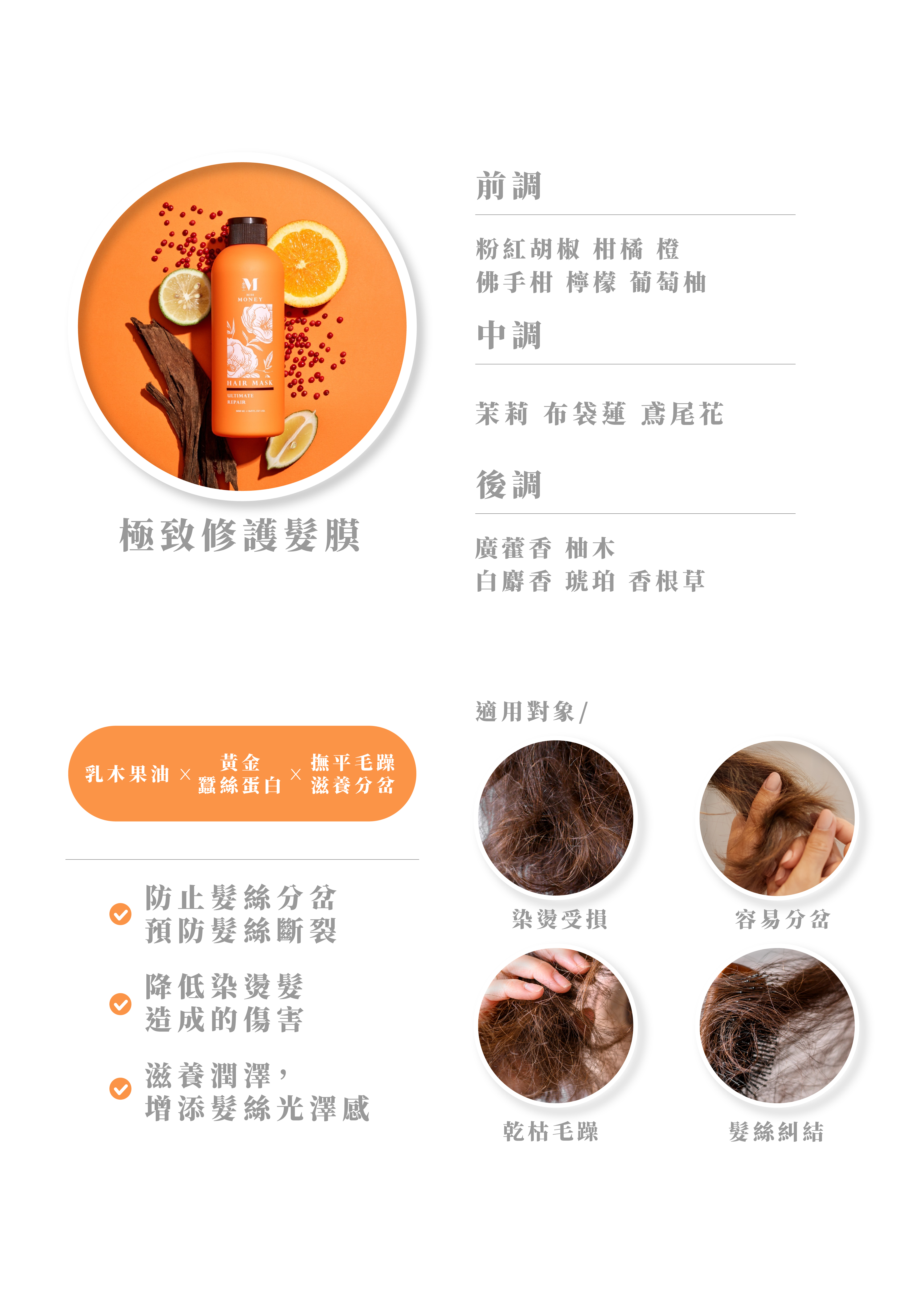 【護/用法】洗髮後取適量塗抹於濕髮上停留3-10分,並以溫水沖淨即可。