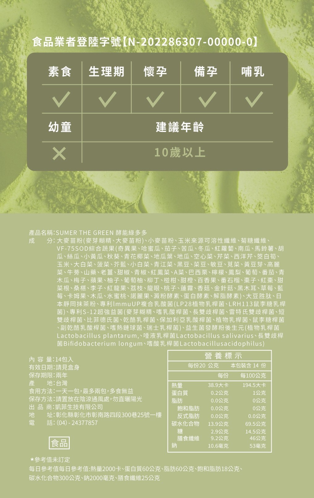■ 產品容量:一盒14包 / 一包20g